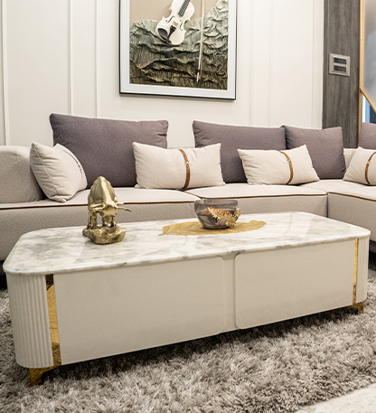 "Add a touch of elegance and sophistication to your living room with our stunning Marble Coffee Table with Storage. This beautifully crafted piece of furniture combines style, functionality, and practicality, making it the perfect addition to any home. The table's sleek, modern design features a beautiful marble top, complete with a subtle veining pattern that adds a touch of luxury to any room. The sturdy base is made from high-quality materials, ensuring stability and durability. The table also features a convenient storage compartment, perfect for stashing away remotes, magazines, and other living room essentials."