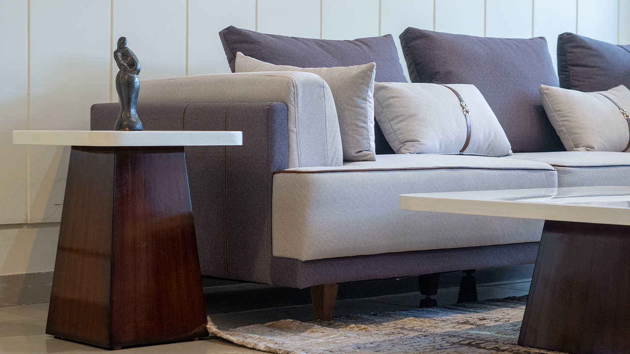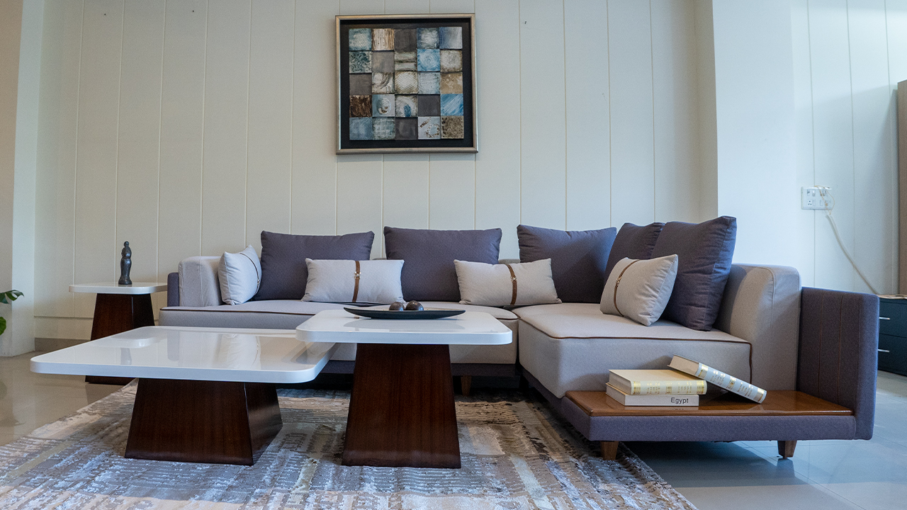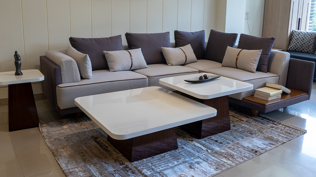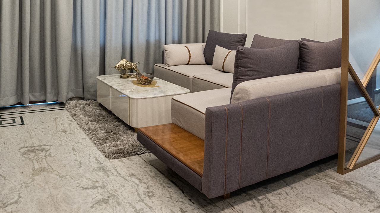Modern L-Shaped Sofa Set with Marble-Top Coffee Table