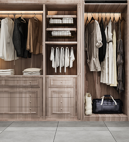 "The modern wardrobe is a masterpiece of contemporary design, seamlessly blending aesthetics with functionality. This sleek and sophisticated piece of furniture is designed to elevate your storage space, providing a perfect blend of style, storage, and display space. The wardrobe features a sturdy wooden base with a minimalist design, complemented by large glass doors that add a touch of elegance to the room. The cabinet's clean lines, smooth surfaces, and subtle lighting create a warm and inviting ambiance, making it the perfect centerpiece for your bedroom. The wardrobe offers ample storage space for your clothes, shoes, and accessories, keeping your bedroom clutter-free and organized. The built-in shelves provide a perfect display space for your decorative items, books, and other treasured possessions, adding a personal touch to your bedroom. The modern wardrobe is a statement piece that reflects your personal style and taste. Its sleek design, combined with its functionality, makes it a must-have for anyone looking to elevate their bedroom. Whether you're a fan of modern minimalism or contemporary chic, this wardrobe is sure to impress."