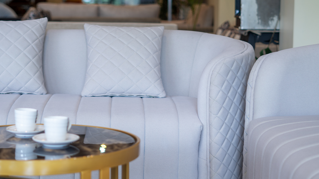 Add a touch of modern sophistication to your living room with this exquisite 3+2 seater sofa set. Featuring a graceful off-white hue and luxurious velvet upholstery, each piece is designed with finely quilted armrests and back cushions for a timeless, upscale look. The soft padding and deep seating promise unmatched comfort, perfect for both everyday lounging and formal gatherings. The set is beautifully complemented by dual circular center tables with a rich black marble finish and stunning gold metallic frames. Set atop a plush area rug, the ensemble exudes class and comfort while making a bold design statement. Ideal for contemporary and classic interiors alike, this sofa set elevates any space with elegance, functionality, and style.